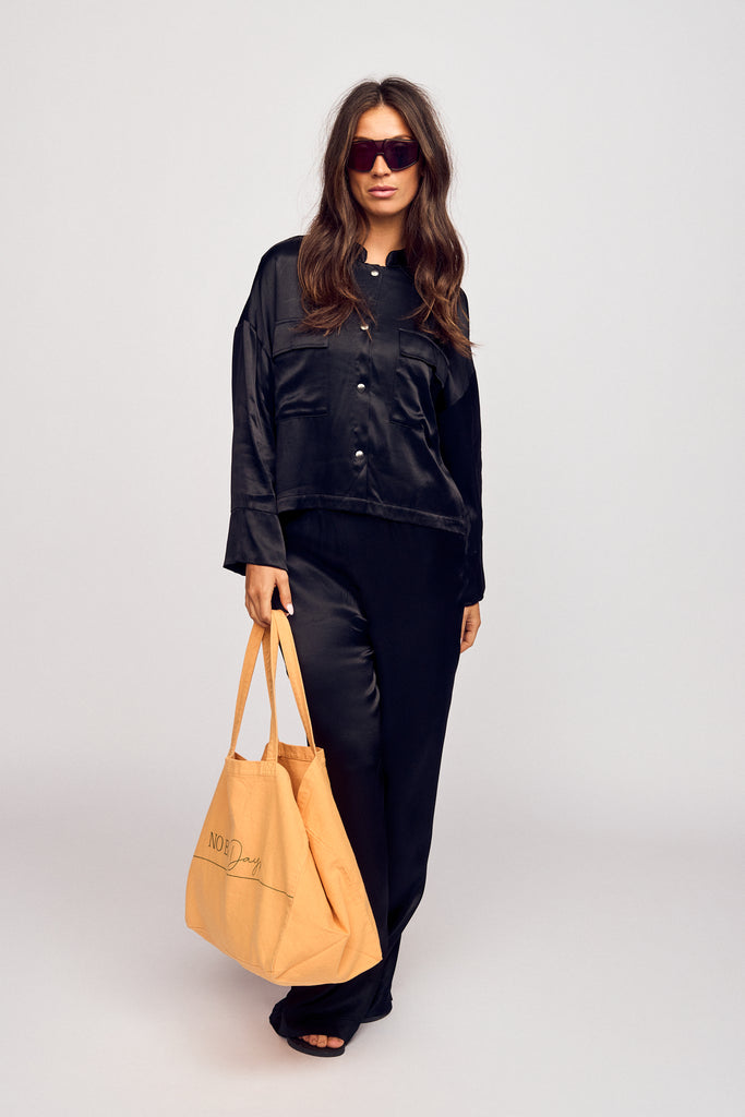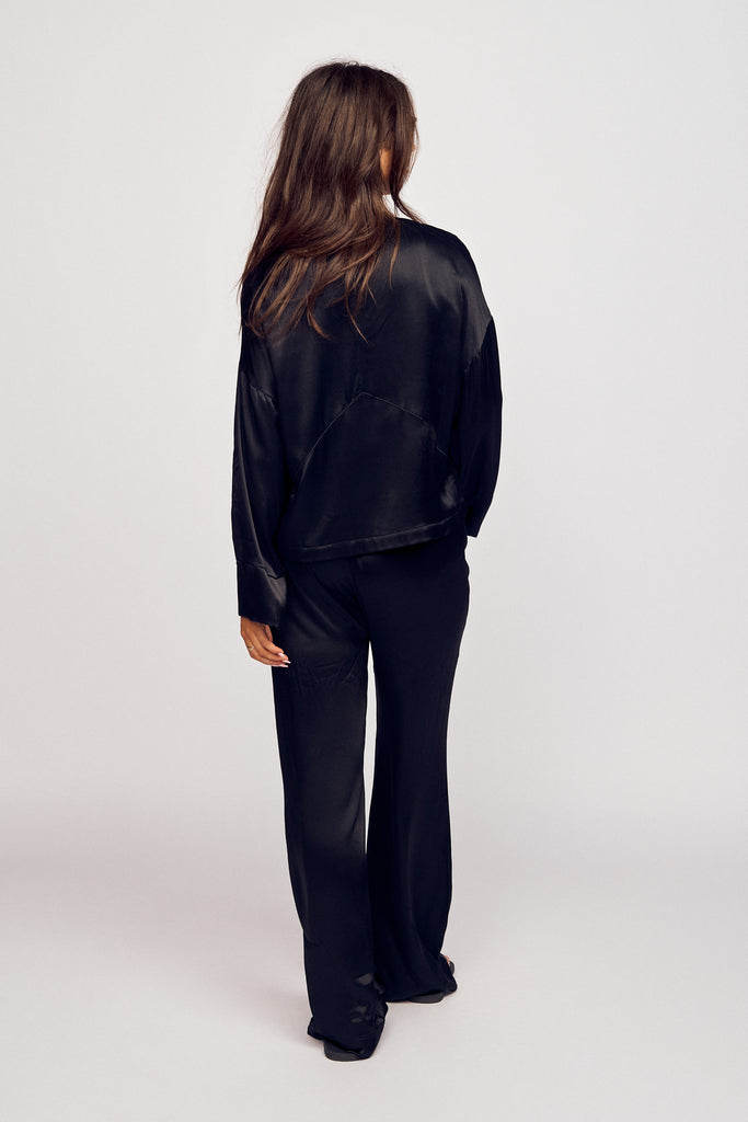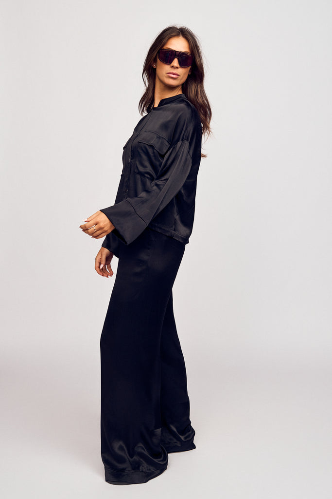 Wear them as a set with the  ROXY black satin jacket for an effortlessly polished ensemble, or pair them with a simple blouse or tee for a modern, laid-back look.