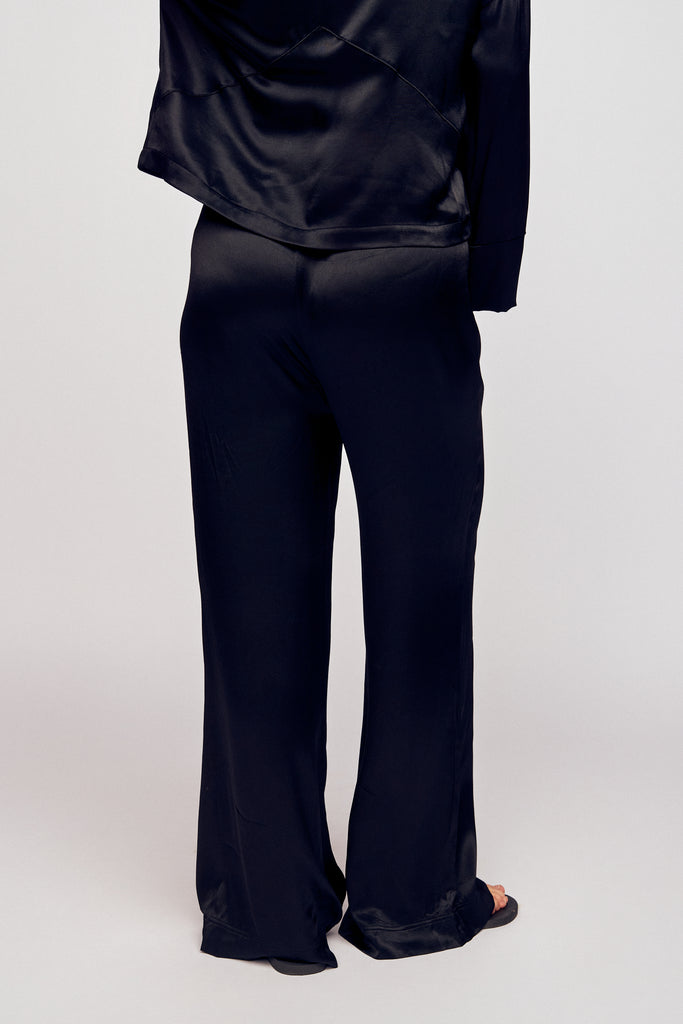 Designed with a relaxed, wide-leg fit and a high-waisted silhouette, they combine comfort with a sleek, elevated aesthetic. The luxurious satin fabric drapes beautifully, creating a fluid, flattering shape that moves with you.